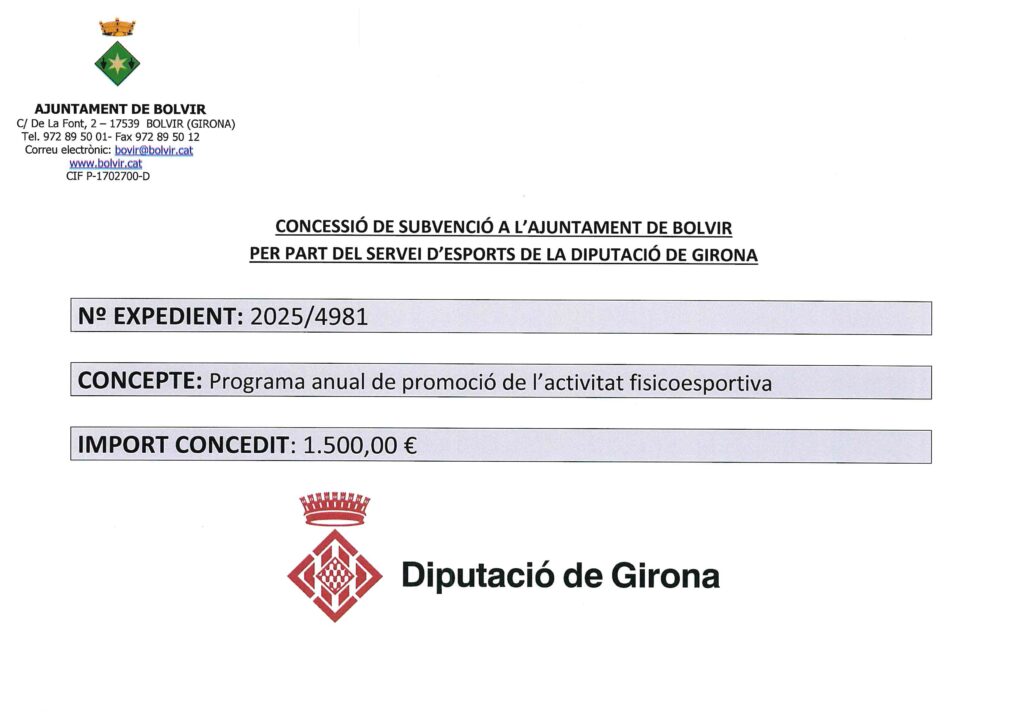 Actualitat, Agenda i Notícies SUBVENCIÓ CONCEDIDA PER LA DIPUTACIÓ DE GIRONA 15/09/2025 - 31/01/2026 < Entrada AnteriorEntrada Posterior >